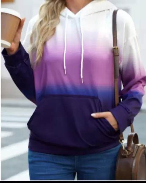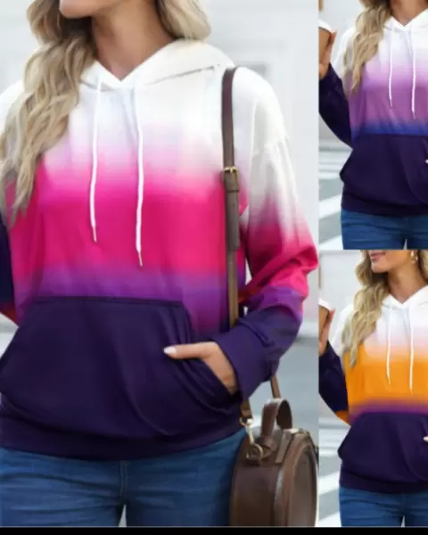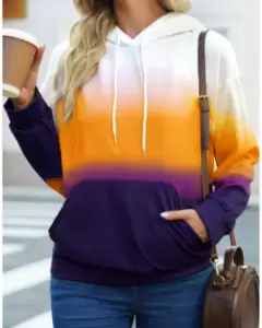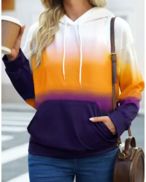Suéter varios colores. Moda degradado de color poliéster encapuchado manga larga manga regular