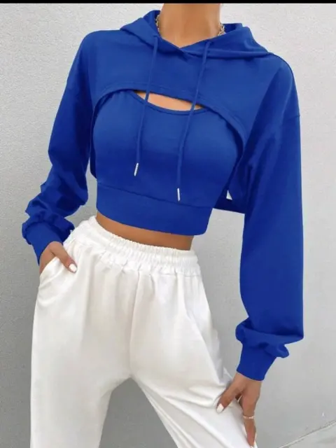 Torerita caliente color azul Forever21. Torerita aterciopelada color azul rey con capucha. Tiene un listón para mejor ajuste. Excelente para usar arriba de un top