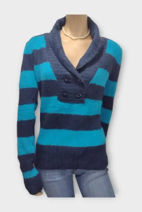 Arizona Sweater Dama Acrylic Azul LSweater marca Arizona en tonos azules 74% Acrylic 23% Nylon 3% SpandexMarca: ArizonaOrigen: ChinaMaterial: 74% Acrylic 23% Nylon 3% SpandexTalla: LEstilo: CasualPatrón: PuntoColor: Azul Cierre: Sweater cerradoPecho: 47 cmLargo: 65 cmHombro: 45 cmManga: 76 cmRopa de USO en muy buen estado