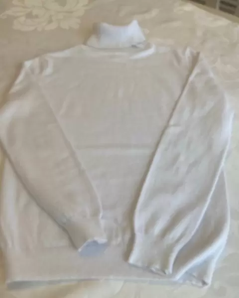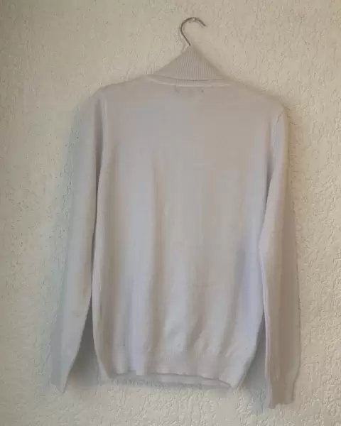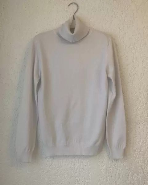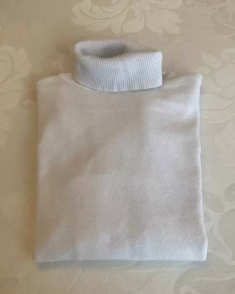 Hermoso básico, T/M, pero bien puede quedar a una talla chica, gris muy claro con hilos plateados, elegante, cuello alto,