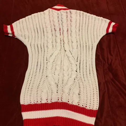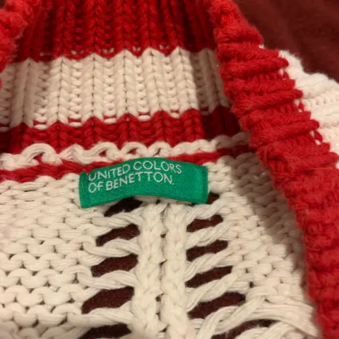 Bluson tejida. Blusón tejido color blanco con aplicaciones en rojo, talla M marca United Colors of Benetton