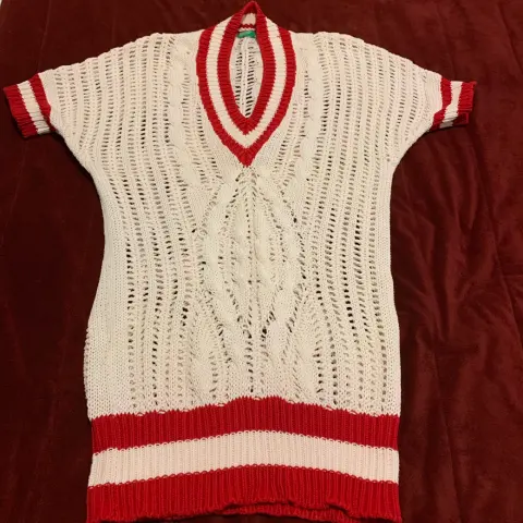 Blusón tejido color blanco con aplicaciones en rojo, talla M marca United Colors of Benetton