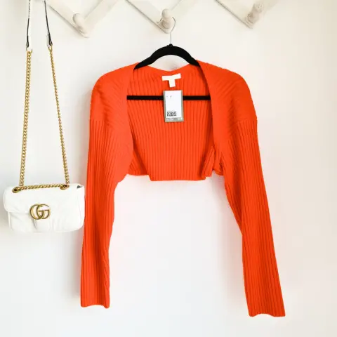 Bolero tejido H&M. Bolero en tejido suave y fino de mezcla de algodón. Corte holgado con hombros caídos y mangas largas anchas.