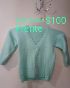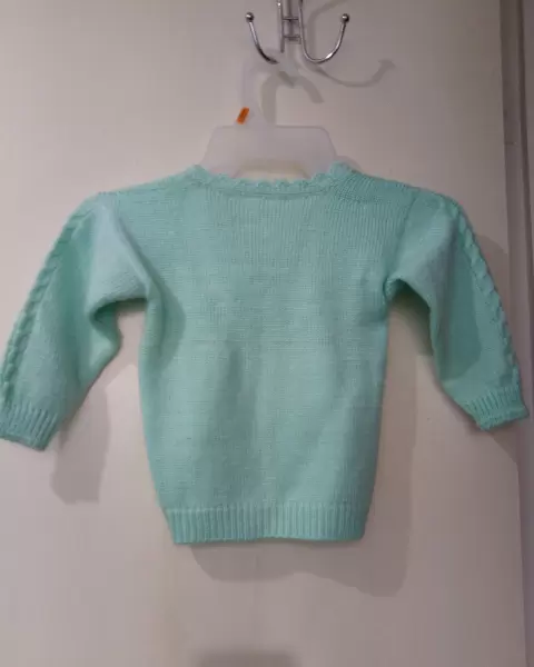 Bonito Suéter para niña, talla 3 años, color verde agua,cuello en v, tejido con estambre, nuevo.