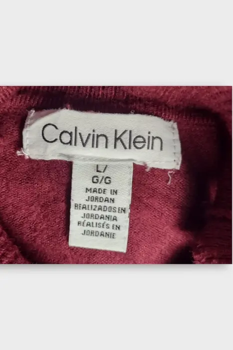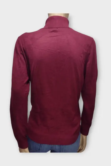 Calvin Klein Sweater Dama Rayón Vino L. Calvin Klein Sweater Dama Rayón Vino LSweater cuello de tortuga marca Calvin Klein 79% Rayón 21% Nylon en color vinoMarca: Calvin KleinOrigen: JordaniaMaterial: 79% Rayón 21% NylonTalla: LEstilo: Cuello de tortugaPatrón: LisoColor: VinoCierre: Sweater cerradoPecho: 50 cmLargo: 58 cmHombro: 37 cmManga: 62 cmRopa de USO en muy buen estado
