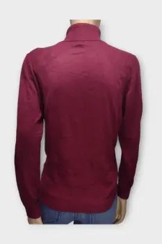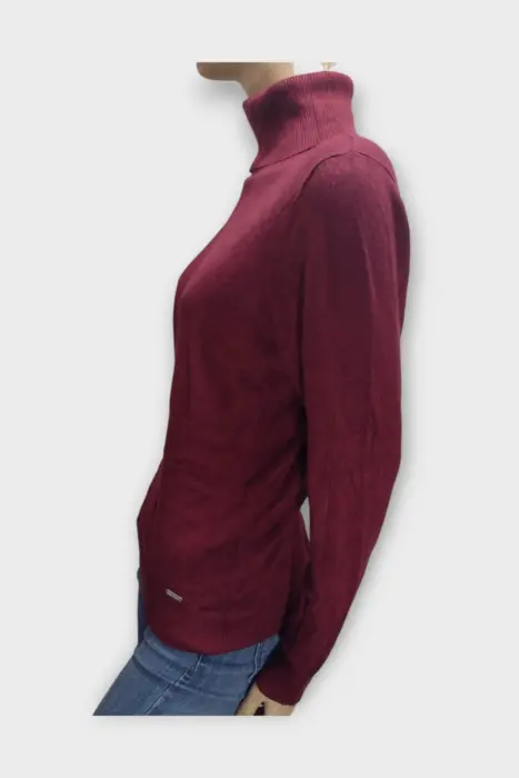 Calvin Klein Sweater Dama Rayón Vino LSweater cuello de tortuga marca Calvin Klein 79% Rayón 21% Nylon en color vinoMarca: Calvin KleinOrigen: JordaniaMaterial: 79% Rayón 21% NylonTalla: LEstilo: Cuello de tortugaPatrón: LisoColor: VinoCierre: Sweater cerradoPecho: 50 cmLargo: 58 cmHombro: 37 cmManga: 62 cmRopa de USO en muy buen estado