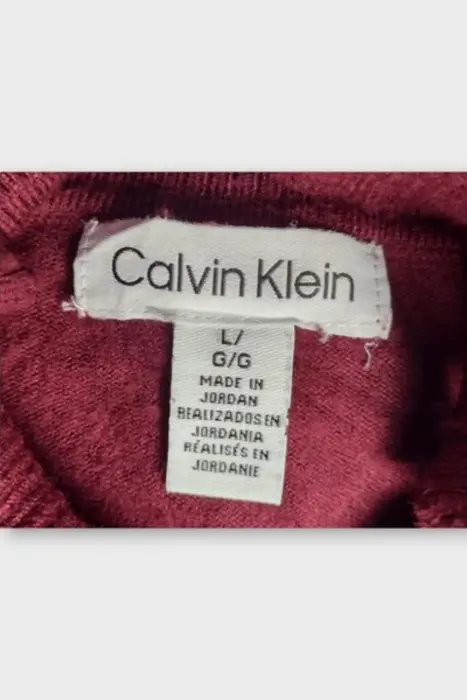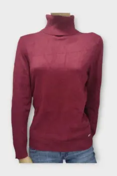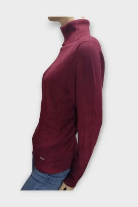 Calvin Klein Sweater Dama Rayón Vino L. Calvin Klein Sweater Dama Rayón Vino LSweater cuello de tortuga marca Calvin Klein 79% Rayón 21% Nylon en color vinoMarca: Calvin KleinOrigen: JordaniaMaterial: 79% Rayón 21% NylonTalla: LEstilo: Cuello de tortugaPatrón: LisoColor: VinoCierre: Sweater cerradoPecho: 50 cmLargo: 58 cmHombro: 37 cmManga: 62 cmRopa de USO en muy buen estado