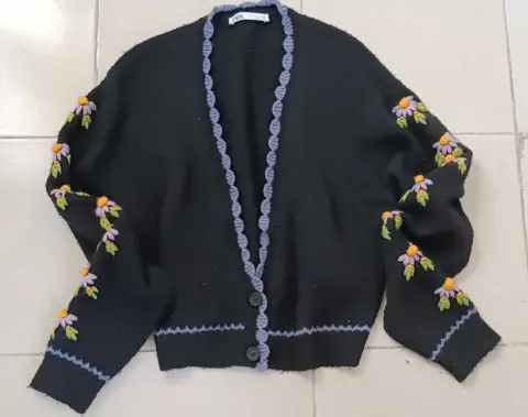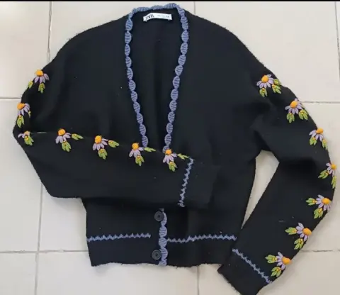 Cárdigan Bordado Zara. Talla L, estira bastante. No presenta detalles estéticos.