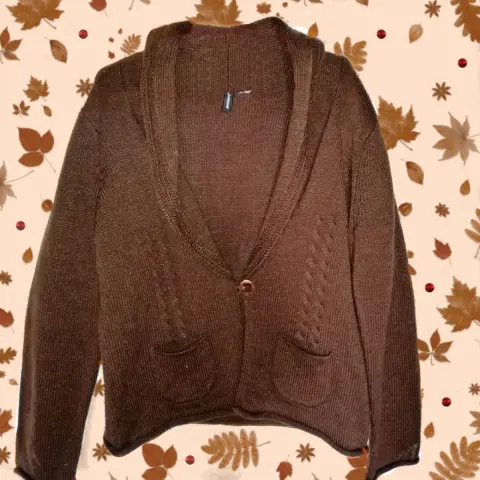 Cardigan café. Lindo suéter tejido cardigan café con un botón y 2 bolsas delanterasQueda a talla S, M, L, la tela estira.