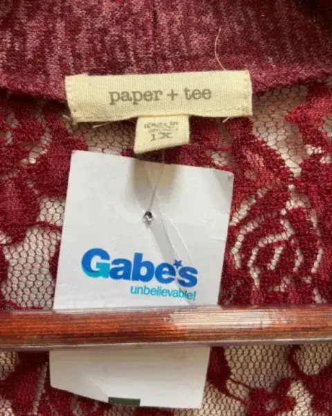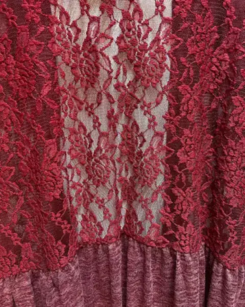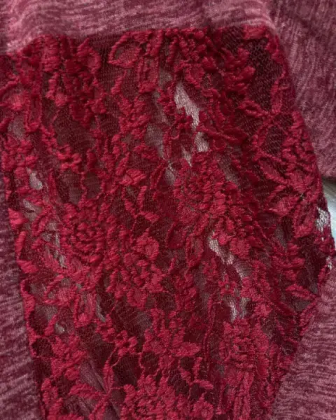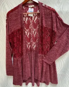 Cardigan con encaje tipo floreado en color rojo y un poco de rojo vino Marca: Paper + TeeTalla: LX