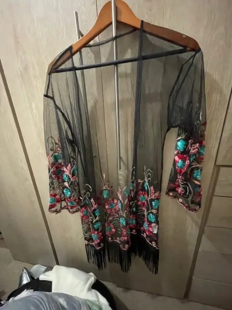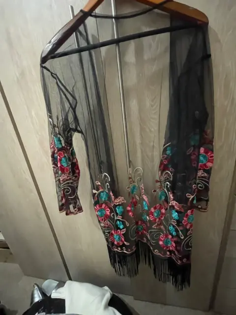 Cárdigan de mesh y bordado. Bellísimo cárdigan de mesh y bordados de colores, Perfecto para la playa o para darle a tu outfit un toque coqueto y bohemio
