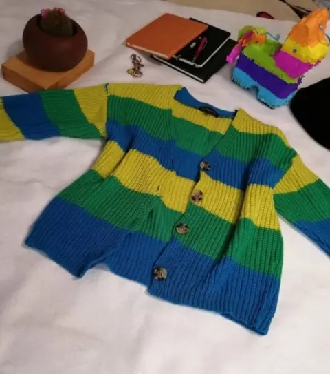 Cardigan de punto talla s. Hermoso cardigan de punto talla ch.Tiene colores muy vivos.Medidas:Axila a axila 47 cmLargo 51 cmManga 49 cmPor el tipo de tela estira hasta 10 cm mas.Solo se usó 2 veces.