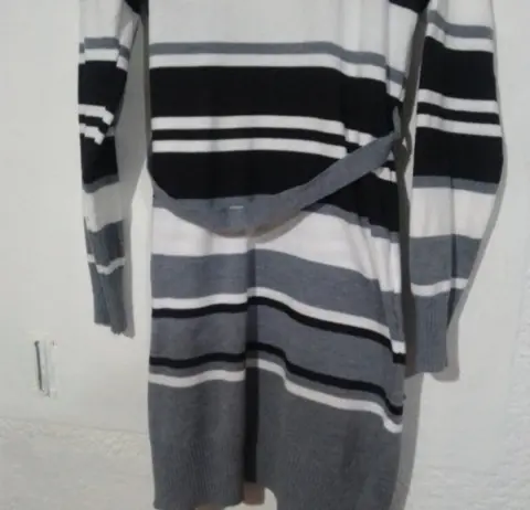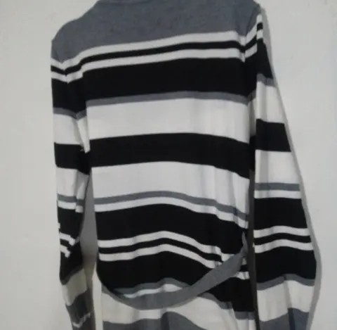 Prenda versátil y moderna. Las rayas le dan un toque dinámico y estilizado, mientras que la combinación de colores neutros lo hace fácil de combinar con diferentes outfits. Sería perfecto para agregar un toque de estilo a cualquier conjunto, ya sea casual o más formal. ¡Definitivamente sería una gran adición a tu guardarropa! 👚✨