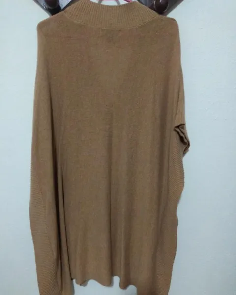 Cárdigan tipo capa.. Bonito cárdigan color beige, es muy calientito y práctico, talla M, pero por su tipo puede quedar a M, se ve muy padre con botas cafés y jeans de mezclilla.