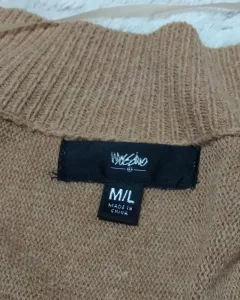 Bonito cárdigan color beige, es muy calientito y práctico, talla M, pero por su tipo puede quedar a M, se ve muy padre con botas cafés y jeans de mezclilla.