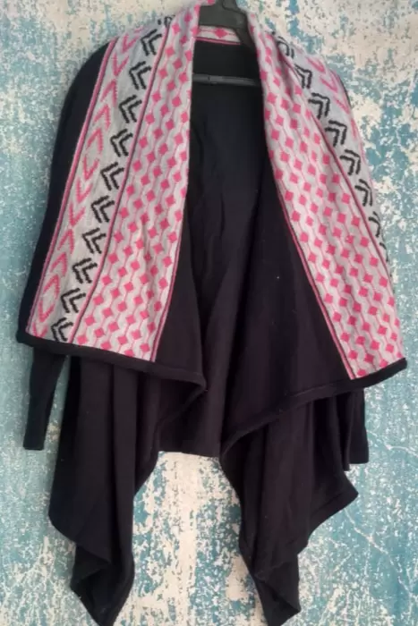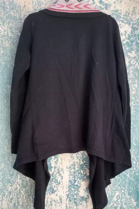 Cárdigan tribal. Cárdigan azul marino con detalles tribales en el cuello, la parte inferior termina en punta, super bonitoTalla unitalla