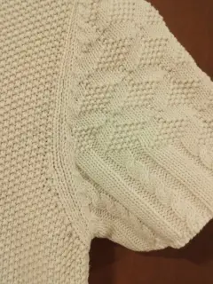 Hermoso Suéter crochet beige. Excelente material y lindas puntadas, estilo y calidad, talla chica pero estira. No tiene defectos.Medidas sin estirar: axila a axila 41 cms, cintura 36 cms, altura 90 cms.