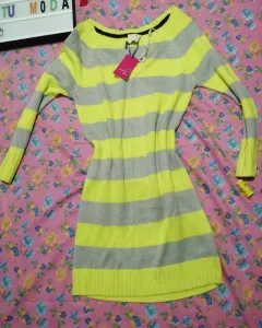 Hermoso suéter tejido, corte largo ideal para usar en temporada de fido con mallas