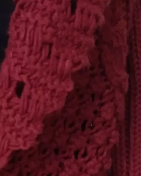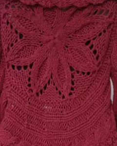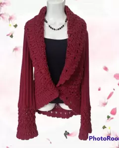 Sweater holgado de punto. Con solapa ancha, botón al frente, y mangas con puños de olan que hacen que luzca más bello. Da una talla M a L.