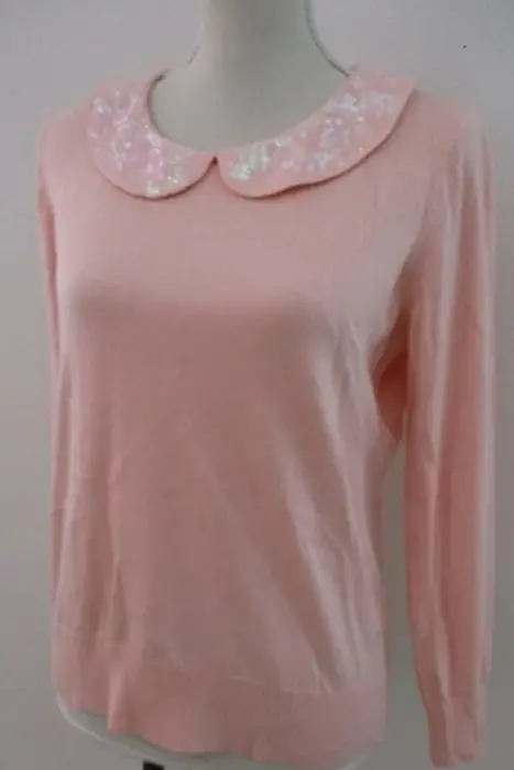 Hermosos suéter rosa pastel H&M.. Hermosos suéter rosa pastel H&M.Con cuello de lentejuela. Color rosa durazno hermoso.Medidas de hombro a hombro 35 cm. Medidas de axila a axila 40cmLargo 48cm.Hermoso accesorio de regalo 🎁