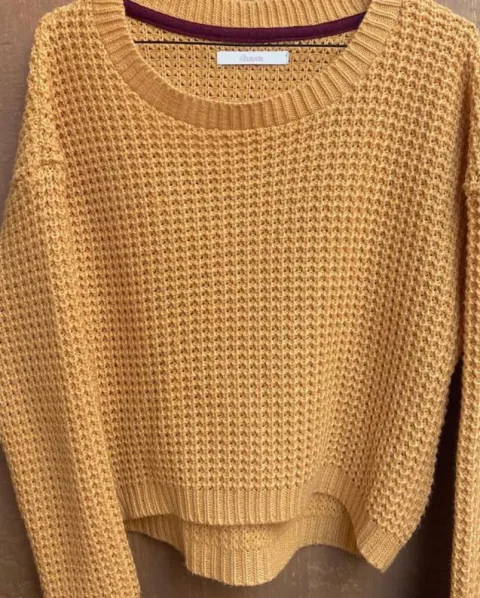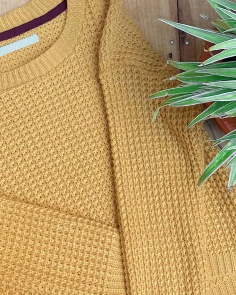 jersey tejido. Éste jersey es un poco pequeño entonces yo creo que a pesar de ser talla M queda en talla S es un poco corto