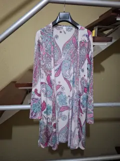 Kimono estampado. Kimono estampado fondo beige con figuras en gris,cereza,azul marino,menta. Ligero fresco, talla unitalla. Nuevo