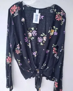 Kimono floreado con detalles de cintas en la parte de abajoEs de tela fresca, no estiraNuevo en perfecto estado