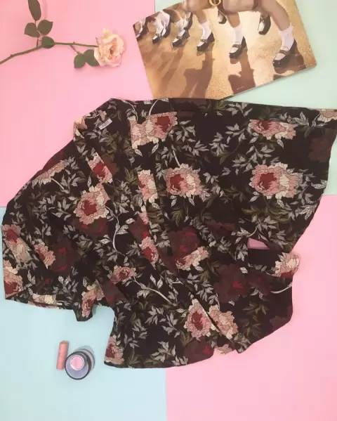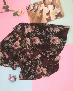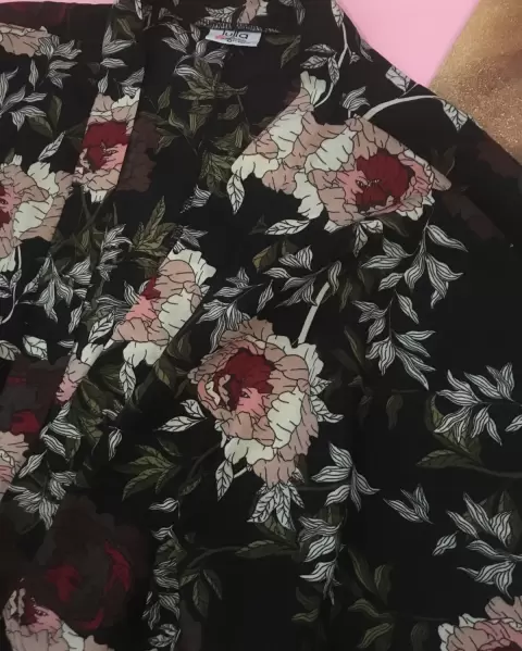 Kimono súper lindo negro con flores rosas comoY rojas, no tiene detalles no estira y no transparenta es tela frescaLlega a las cadera