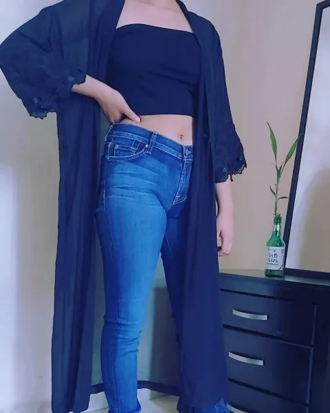 Es largo, tiene bolsitas a los lados y cintas para ajustar la cintura si es que se va a usar cerrado, esta hermoso y sin detalles