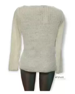 Lindo y casual suéter de tipo hilo beige, es refrescante para estos días de calor o clima templado. Estira, de acrílico y nylon. Medidas largo 66cm, axila a axila 49cm, largo Manga 59cm, hombro a hombro 40cm