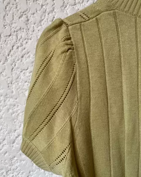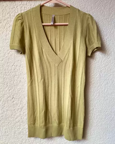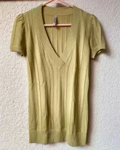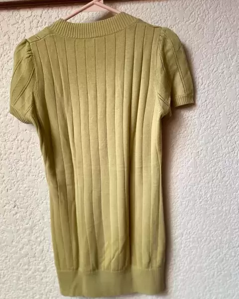 Lindo suéter español color verde seco, cuello en v , manga corta de un tejido muy padre