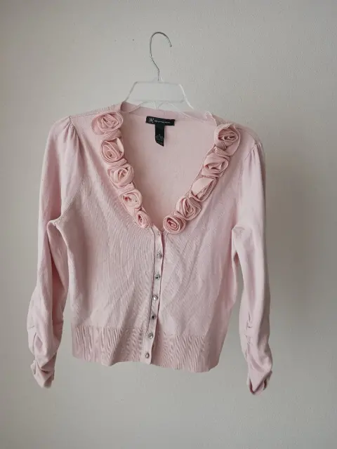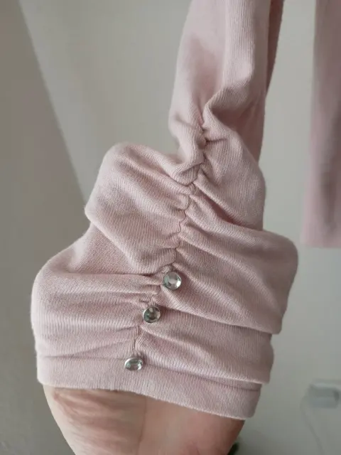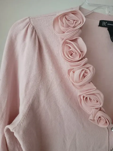 Lindo suéter rosa. Suéter rosa, súper ligero y calientito, rosas formadas con tela y botones con piedras