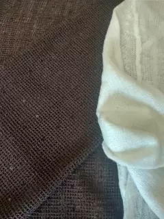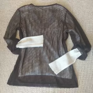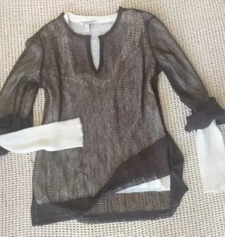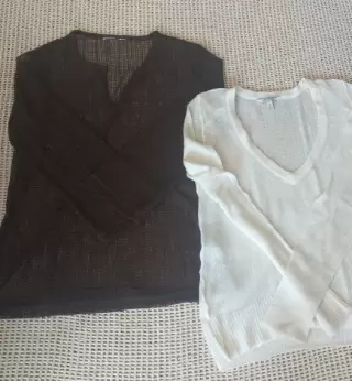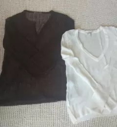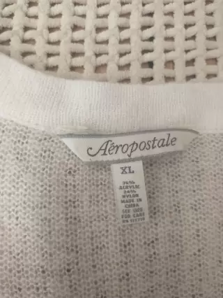 Pack suéter café con lentejuelas tipo red/talla (L)(hombros .46/axila .53/largo.71)Suéter color blanco /cuello en (V) talla (L) marca Aéropostale
