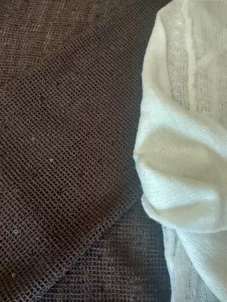 PACK SUÉTER TIPO RED/ SUÉTER BLANCO. Pack suéter café con lentejuelas tipo red/talla (L)(hombros .46/axila .53/largo.71)Suéter color blanco /cuello en (V) talla (L) marca Aéropostale
