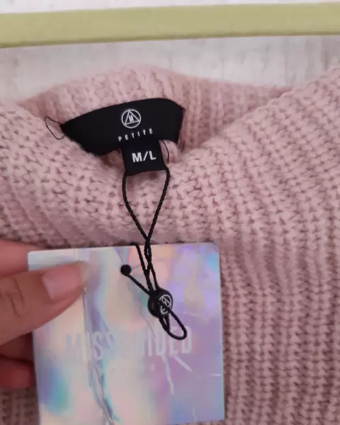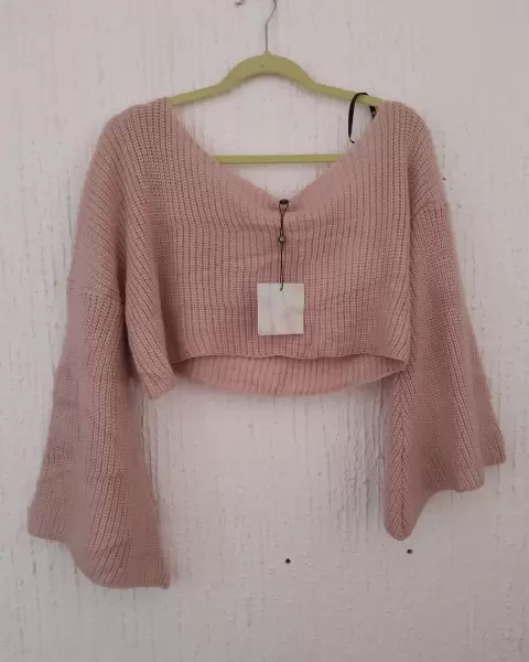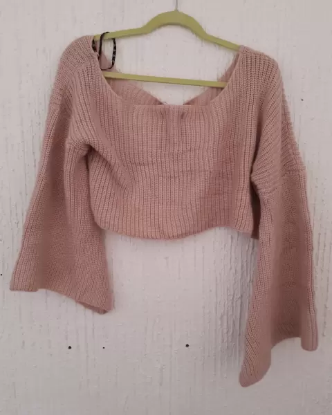 Petite off shoulder sleeve. Hermoso en color rosa palo con manga campanaDice talla M pero también queda a LA mu me quedo grande