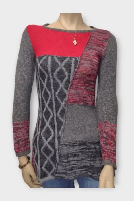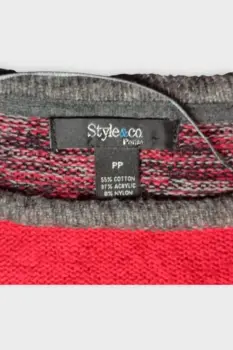 Style & Co Sueter Dama Algodón Rojo y Gris PP