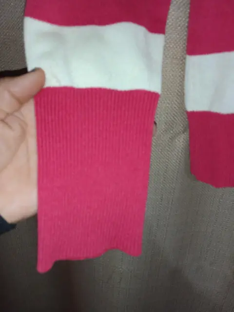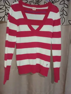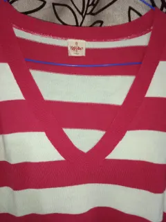 Suéter. Suéter rayado rojo con blanco cuello en v manga larga un estilo muy casual