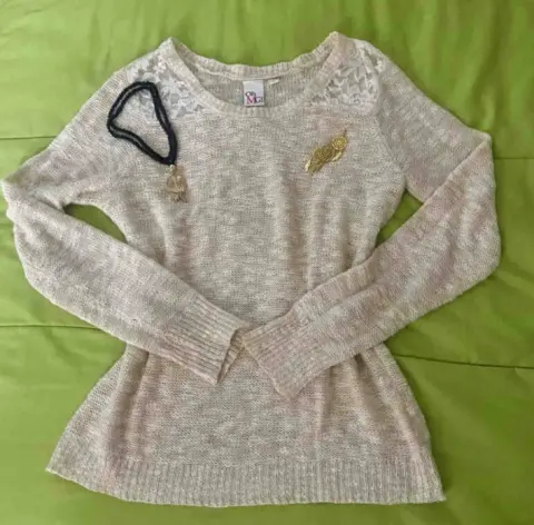 Chicas este suéter está lindo! Tiene encaje sin detalles el color es beige y te hace una figura muy bonita