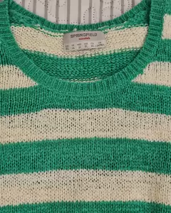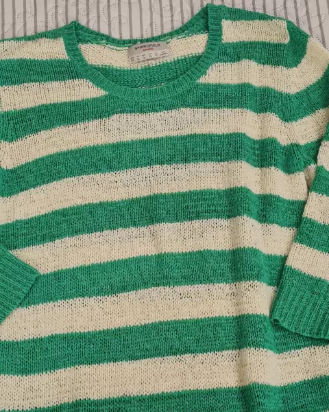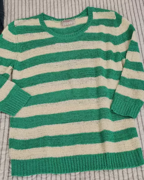 Sueter a rayas beige con verde. Hermoso suéter a rayas, verde con beige, holgado, ideal para la temporada y muy cómoda
