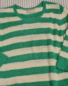 Hermoso suéter a rayas, verde con beige, holgado, ideal para la temporada y muy cómoda