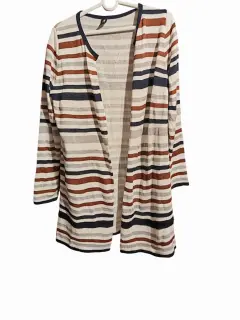 Lindo suéter a rayas color café gris blanco y negro está en perfecto estado solo se utiliza una vez estira bastante Y es largoMedidas axila a axila 55 cmLargo 85 cm