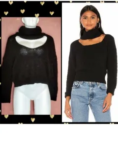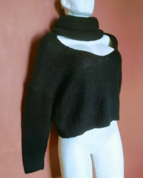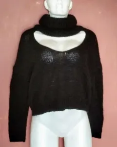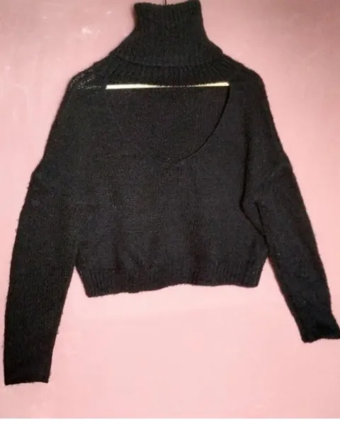 Suéter abierto de pecho o espalda descubierta. Hermoso Suéter de cuello alto úsalo como prefieras con pecho abierto o dale la vuelta y muestra la espalda, color negro, diseño es súper lindo un clásico con un toque super cool, va muy bien a pantalón de tiro alto.Etiquetado como talla chica, da a mediana sin problema, e incluso hasta grande porque estira. Usado pero en excelente estado.Axila-axila 68 cmLargo desde el hombro 50 cm