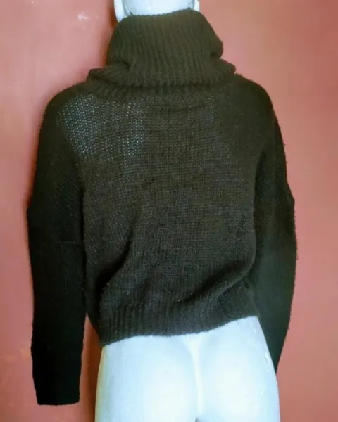 Hermoso Suéter de cuello alto úsalo como prefieras con pecho abierto o dale la vuelta y muestra la espalda, color negro, diseño es súper lindo un clásico con un toque super cool, va muy bien a pantalón de tiro alto.Etiquetado como talla chica, da a mediana sin problema, e incluso hasta grande porque estira. Usado pero en excelente estado.Axila-axila 68 cmLargo desde el hombro 50 cm