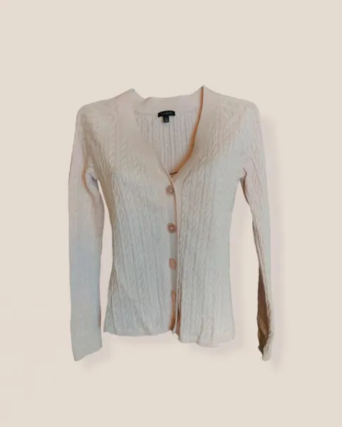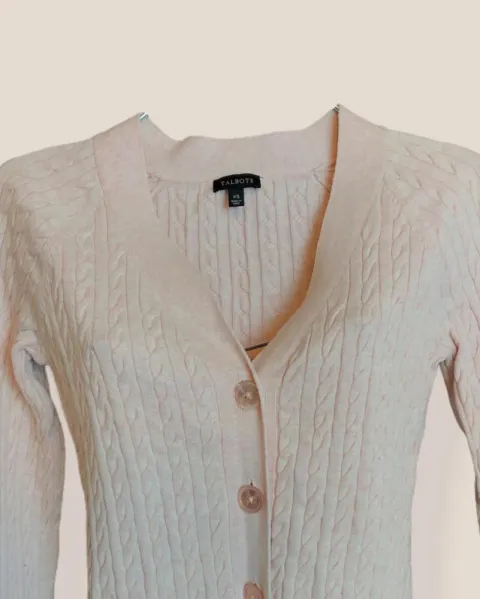 Suéter abierto Talbots. Suetercito color rosa claro con detalles jaspe en blanco, es abierto con botones al centro, seguro que te encantará!!!🤗
