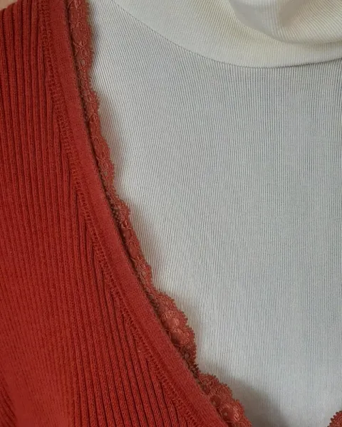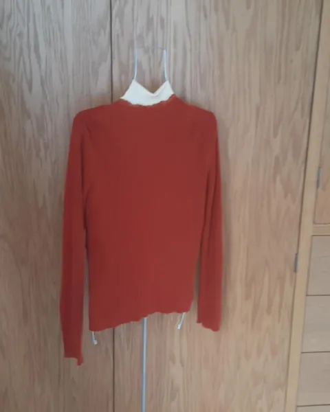 Hermoso suéter anaranjado con detalle de encaje en la orilla especificaciones en fotos talla L