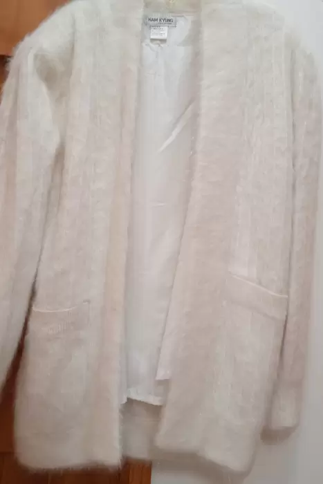Suéter largo de angora.Ideal para una salida de noche a una cena, graduación o boda.Queda por debajo de la cadera.
