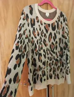 Suéter animal print, queda larguito, talla XL🐆60cm ax-ax🐆74cm largo