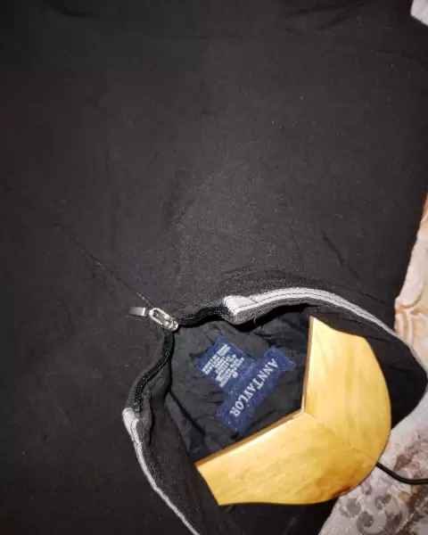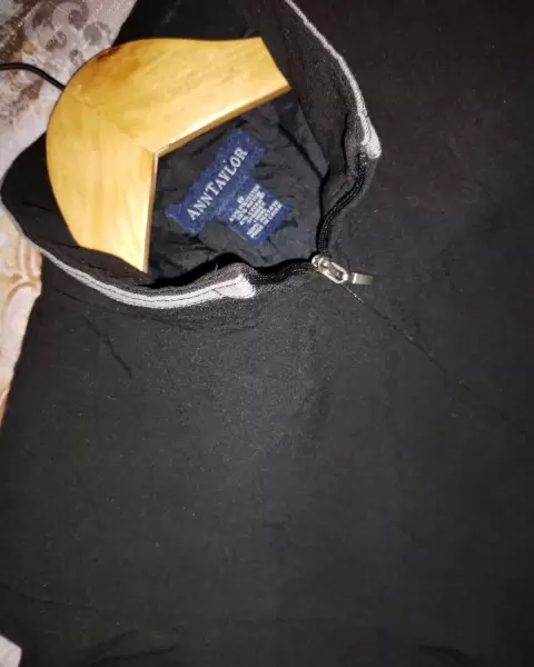 Suéter Ann Taylor. Suéter tipo saco en color negro, solo lleva 2 bolsas a los costados, forro 100% @cetato.Esta echo de Poliester, rayón y licra. Talla6💫Axila x Ax 50💫Cuntura 45💫Largo 55.
