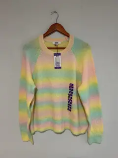 Suéter arcoíris bb Dakota. ✅suéter en combinación de colores ✅súper bonito 😍 ✅nuevo con etiqueta 🏷️ ✅el tejido estira ✅precio marcado de 89 dólares ✅talla 2XL ✅medidas: 60 cm de largo 60 cm ✅aprovecha súper precio 😊✅armo paquetes 📦