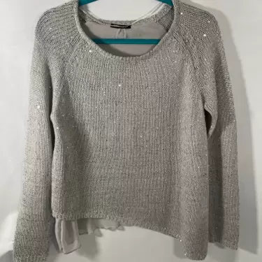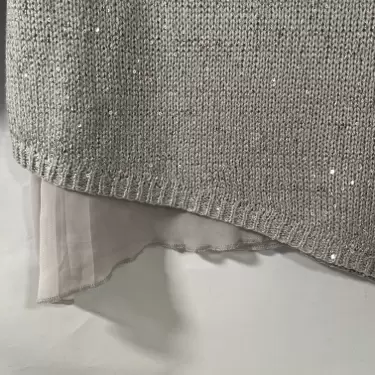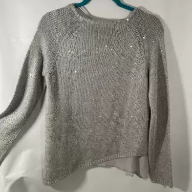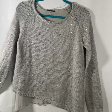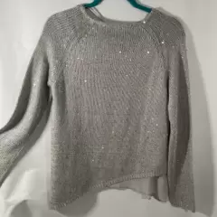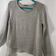Hermoso suéter asimétrico, gris con pequeñas lentejuelas , medidas axila a axila 47cm, hombro 43cm, largo 67cm